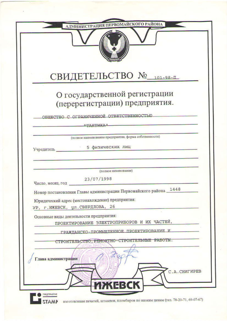 Товарный знак «Тактика», ИНН, ОГРН и прочее