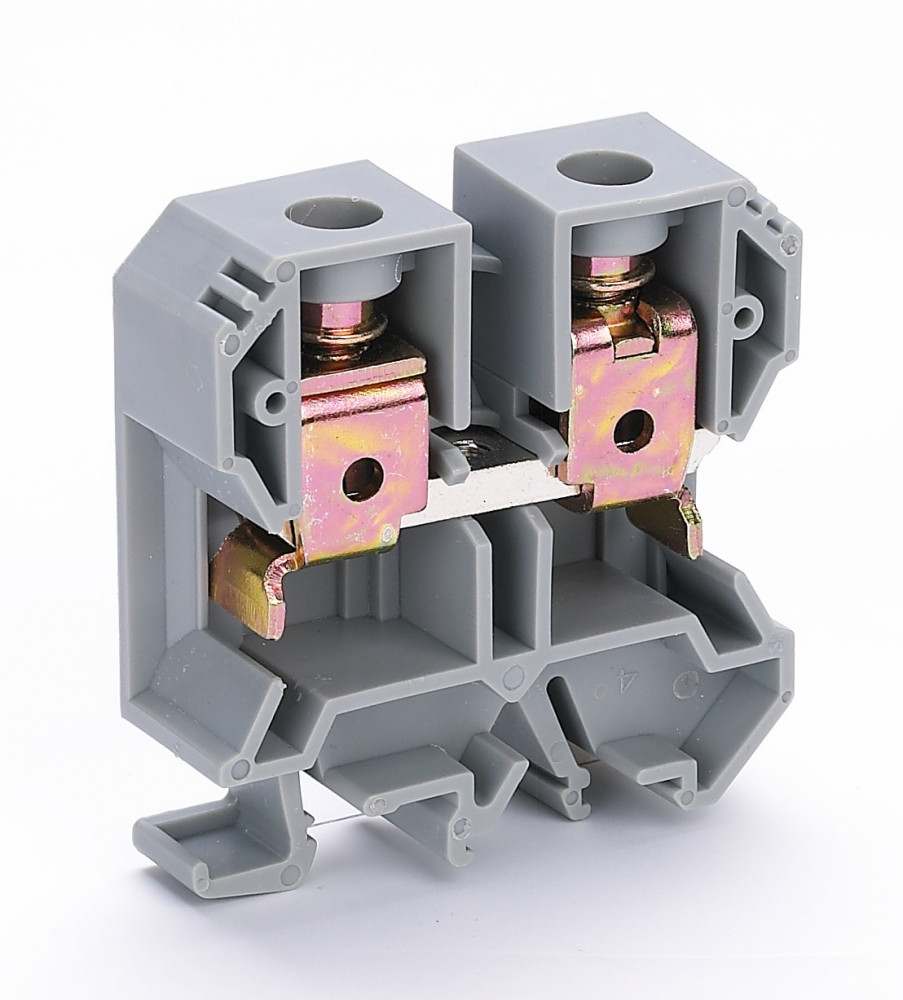 Зажим наборный серии ЗН-101 DEKraft ; номинальный ток — 125 А; сечение проводов от 3 до 35 кв.мм; цвет – серый; материал корпуса — полиамид; материал клемм и винтов – латунь; монтаж — защелкиванием на DIN-рейку; количество в упаковке – 20 шт. Клемма выполнена таким образом, что обеспечивает двойной обжим проводника. Это обеспечивается в том числе и за счет насечек на клеммах. Флажок под зажимом предотвращает случайную установку проводника ниже зажима.